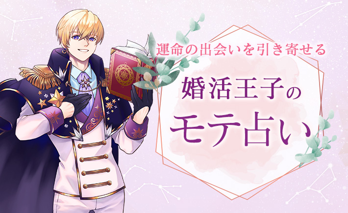婚活王子SHOの運命の出会いを引き寄せる為のモテ占い。毎週月曜更新で、12星座別にその週の運勢とモテ度がアップするファッションやコミュニケーション、カラーなどを占います。成婚率No.1の結婚相談所であるパートナーエージェント監修のNo.1モテ占い!